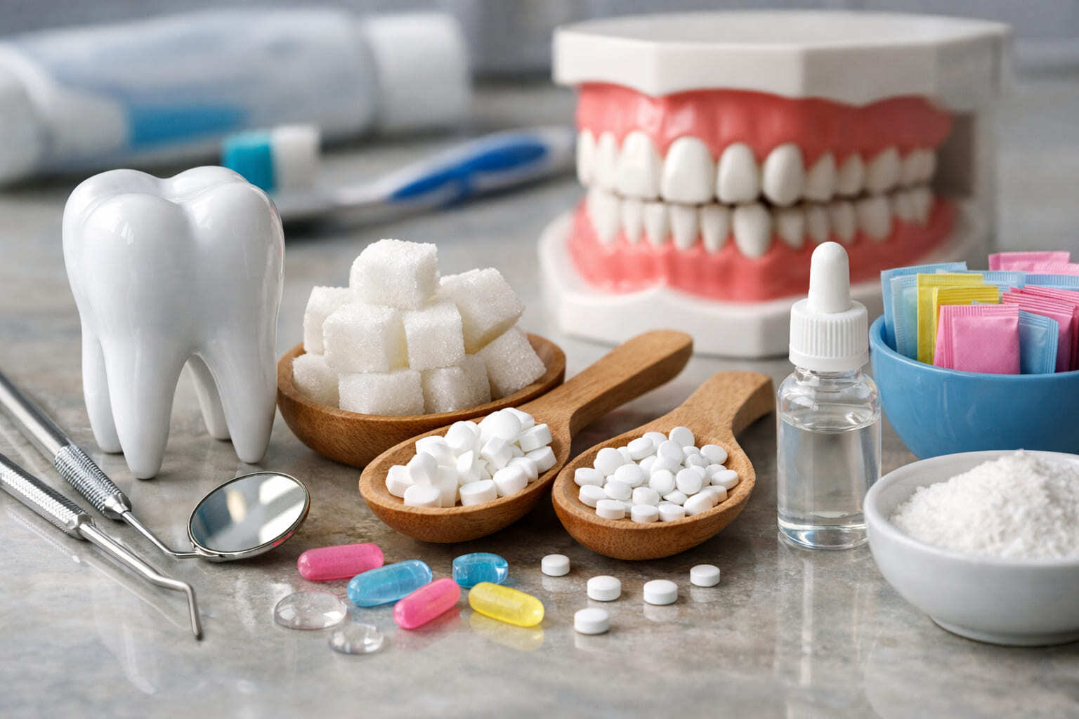 Заключение: Не все заменители сахара одинаковы. Делая осознанный выбор в пользу некариогенных подсластителей (ксилит, стевия, сукралоза), вы действительно можете наслаждаться сладким вкусом, не нанося вред своим зубам. Это smart-решение для тех, кто заботится о здоровье полости рта, не отказывая себе полностью в маленьких радостях.